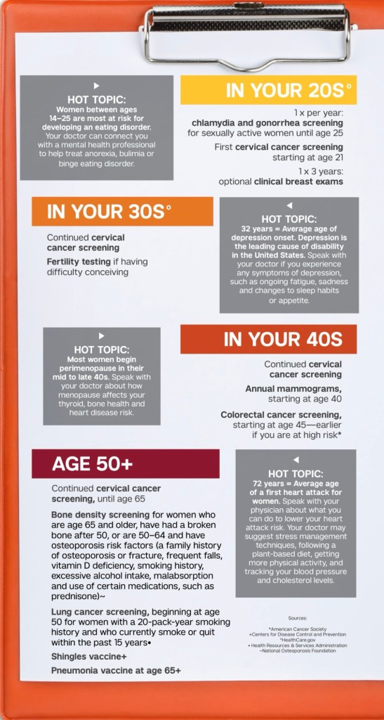 Ladies, when was the last time you thought about the health screenings you need each year. With our busy schedules, it’s easy to forget to make appointments. But ensuring you are taking the right steps to support your health doesn’t have to be difficult. Weill Cornell Medicine makes it easy to keep track of the screenings you need each year, with a screening checklist for women of all ages. Follow this step-by-step guide to ensure you are prioritizing your health each year.